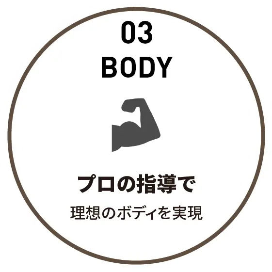あなたの目標達成をサポート - フィットネス競技優勝者や有資格者など、身体づくりのプロフェッショナルがトレーナーとして在籍。当クラブの厳しい基準をクリアした選りすぐりのトレーナーが、トレーニング指導はもちろん、機能解剖学や栄養学など幅広い知識をもとに、お客様一人ひとりの目標達成をサポートします。