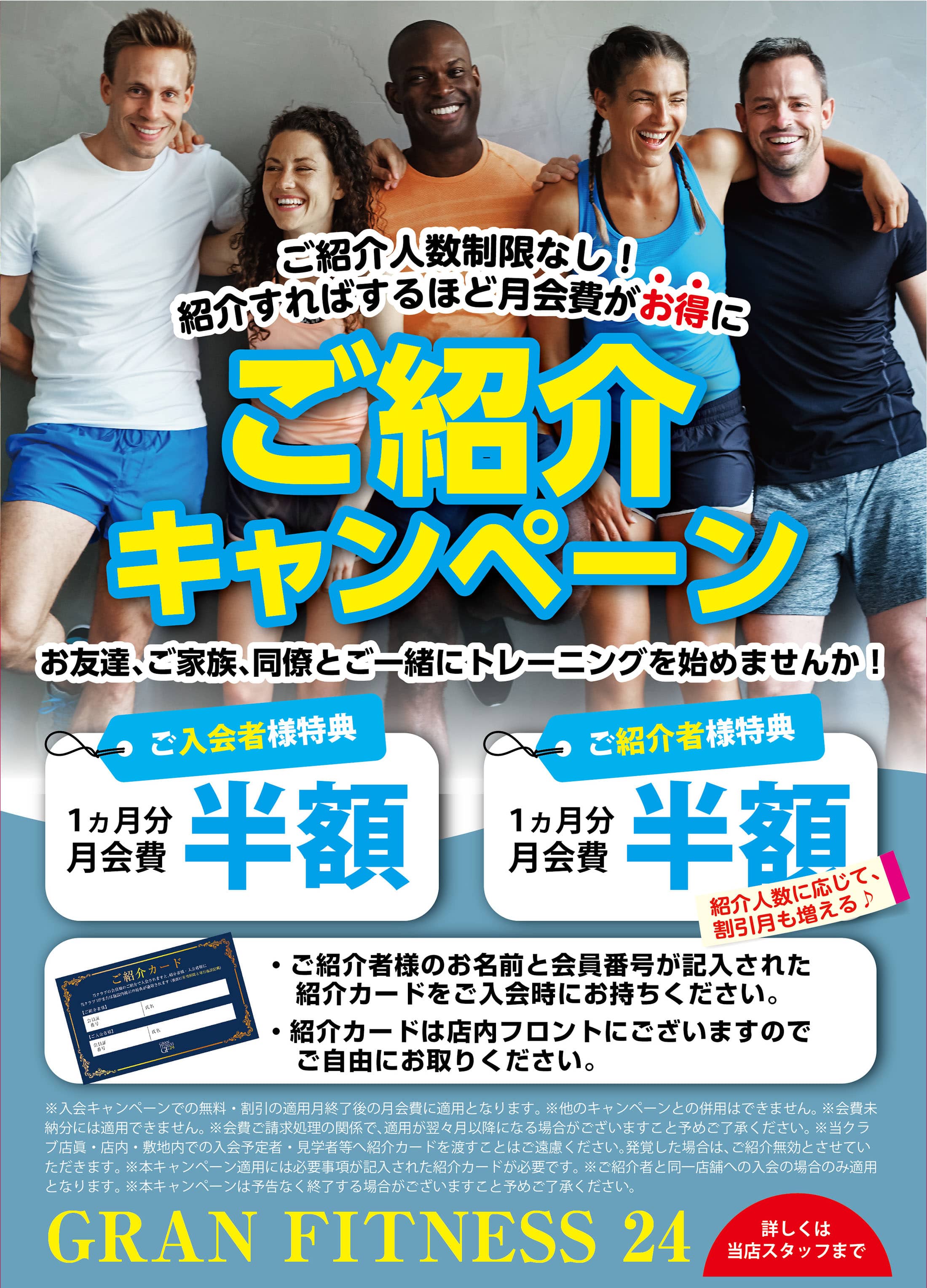 ※当クラブ店前・店内・敷地内での入会予定者・見学者等へ紹介カードを渡すことはご遠慮ください。発覚した場合は、ご紹介無効とさせていただきます。